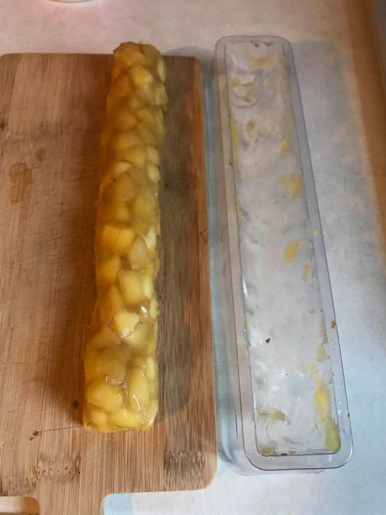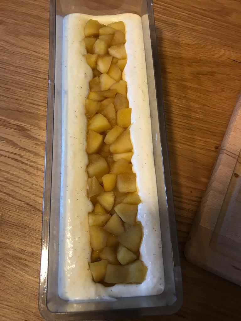 Démouler l’insert aux pommes et le découper si nécessaire pour avoir un insert de 5cm de large.