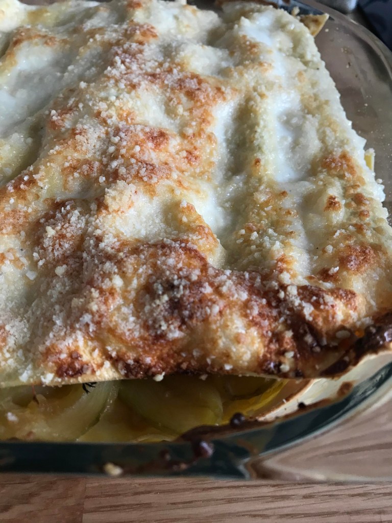Répéter l’opération puis terminer par une couche de béchamel et saupoudrer de parmesan.