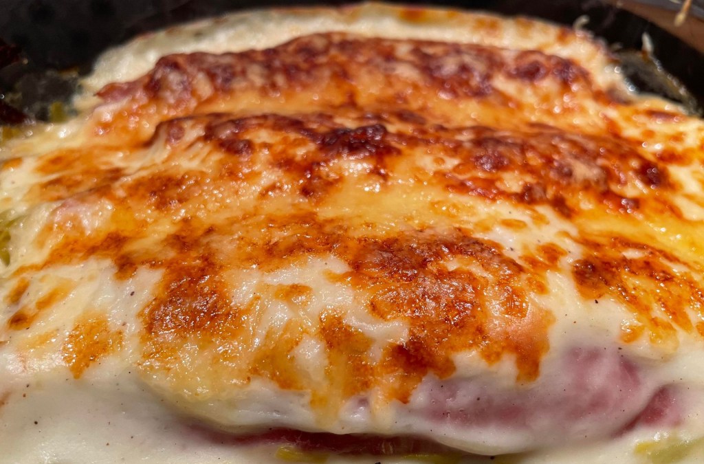 Recourvir du reste de la béchamel, parsemer de comté râpé et faire gratiner à 220°c dans le haut de votre four.