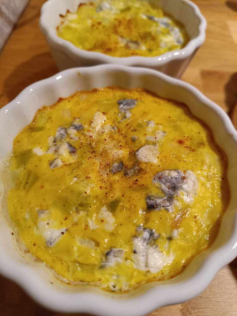 - Verser la préparation dans les ramequins et ajouter des morceaux de fromage.