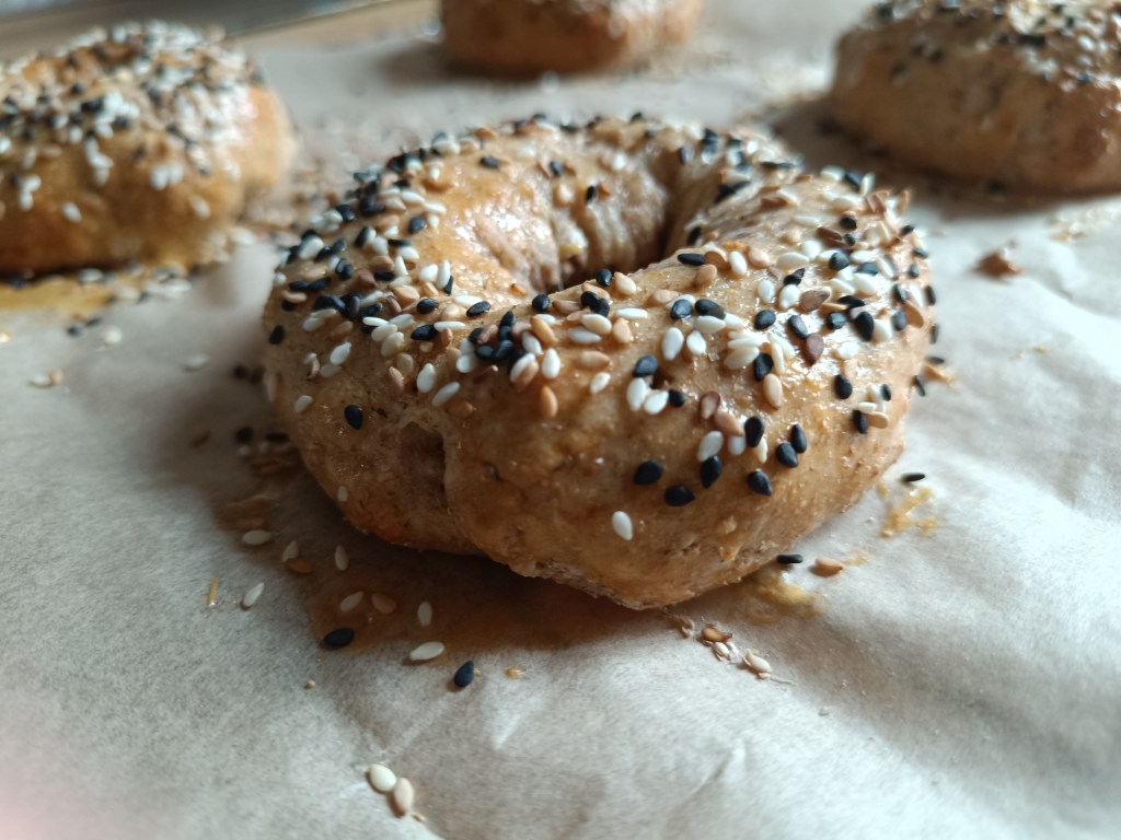 Former les bagels, recouvrir avec le jaune d’oeuf et parsemer de graines. Enfourner pour 18 minutes.