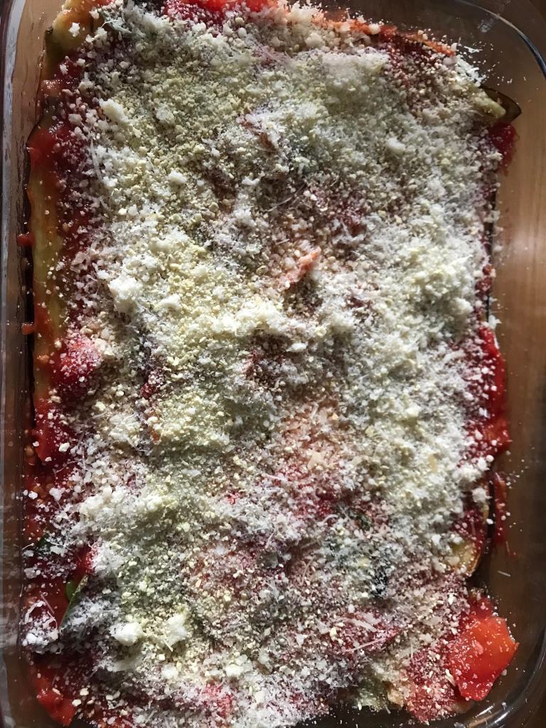 Répéter l’opération puis terminer par une couche de béchamel et saupoudrer de parmesan.