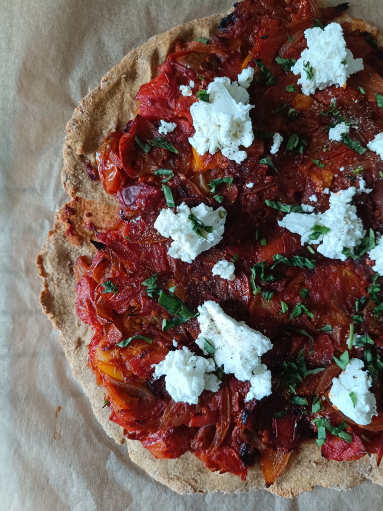 Recouvrir de la compotée de tomates et enfourner pour 20 minutes à 180°c dans le bas du four.