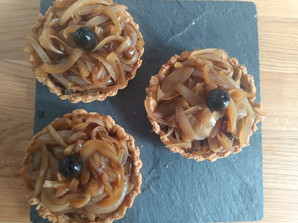 Mettre la fondue d’oignons dans les fonds de tarte.